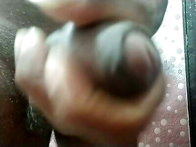 Hefty rock-hard knob up close onanism