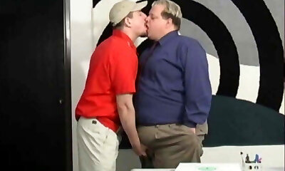Younger Guy Gargles on Daddys Cock Like a Good Dude & Gets a Tasty Suprise